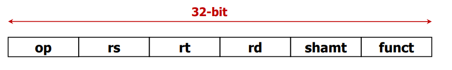shamt ( 5 bit ) : shift amount, 나중에 bit shift 연산을 수행할 때 얼만큼 shift 할지를 기술한다.