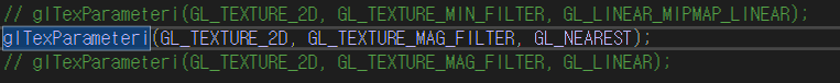 텍스쳐 필터링은 위 코드로 옵션을 설정한다.