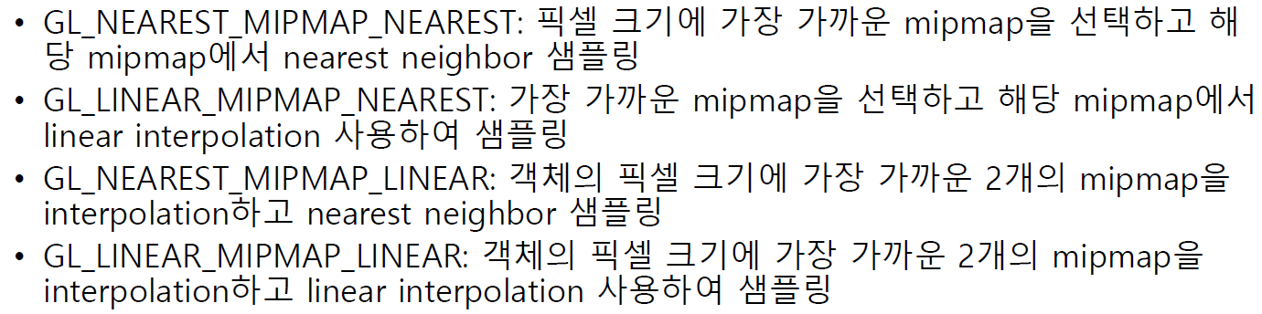 세번째 파라미터에는 확대, 축소시 mipmap을 어떻게 사용할지 지정한다.