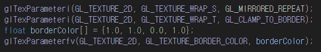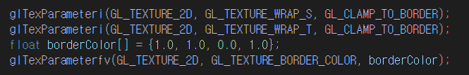 만약 GL_CLAMP_TO_BORDER 옵션을 지정하고 싶다면, 아래와 같이 사용해야 한다.