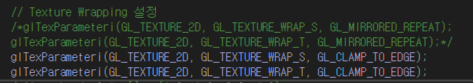 x축, y축에 대해 각각 설정을 지정해야 하는데, 아래와 같이 glTexParameteri 함수를 사용하여 지정할 수 있다.