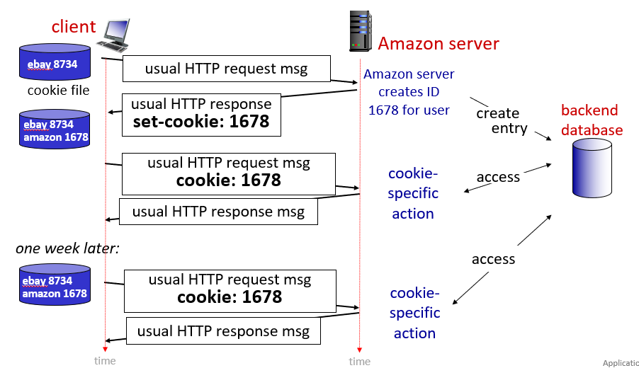 일주일 뒤 다시 같은 클라이언트가 접근하면, 여전히 같은 쿠키를 같이 보내므로, 해당 쿠키를 통해 DB에 접근해서 값을 읽고 쓸 수 있다.