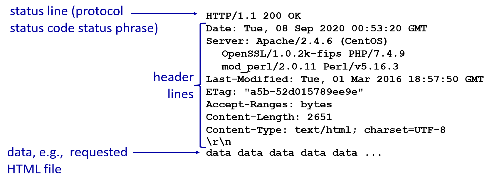 header lines 는 request 와 비슷하게 여러 줄로 구성되어있다.