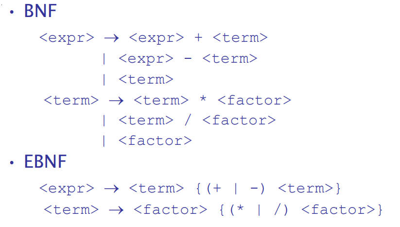 하지만 아래 BNF는 그렇지 않다. 반드시 왼쪽부터 더하도록 명시하고 있기 때문에 명확하다.