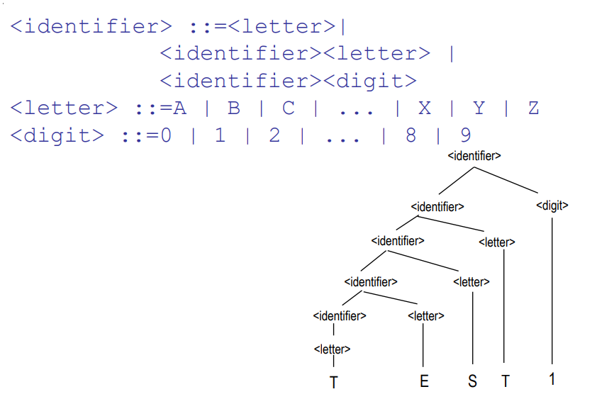 (위 BNF 에서 ::= 는 → 와 같은 의미이다.)