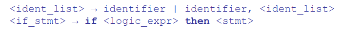 identifier 라는 터미널 또는 ( | 기호 ) identifier, <ident_list> 형태로 확장된다.