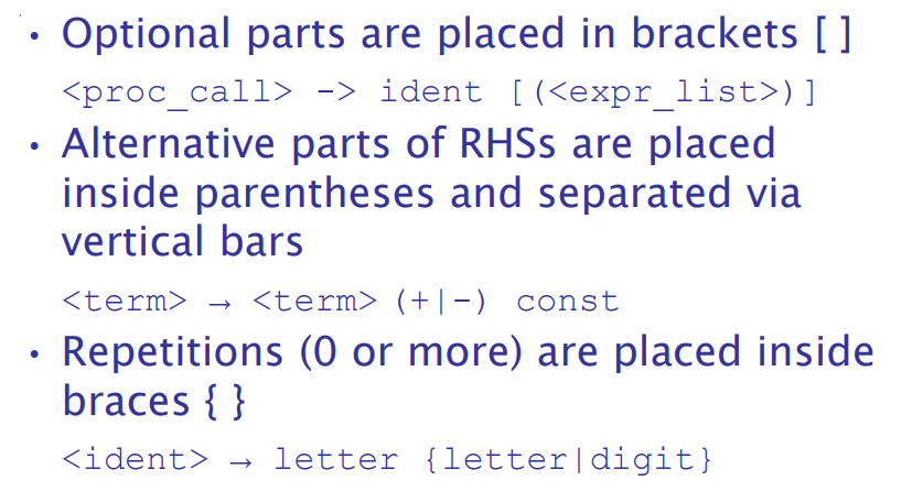 기존 BNF 로 표현할 때 불편한 점을 간편하게 작성할 수 있도록 문법을 확장한 BNF 이다.