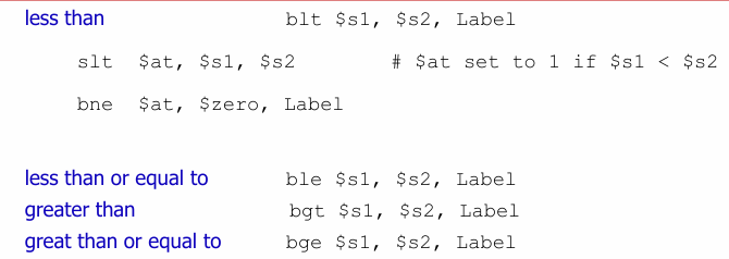 이를 위해서 MIPS 는 slt 명령어를 제공한다.