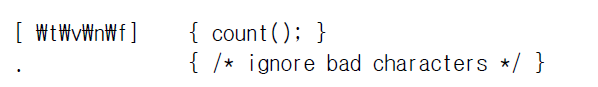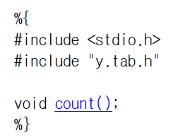 이 구문은 lex 에서 전처리에 사용하는 구문이다.