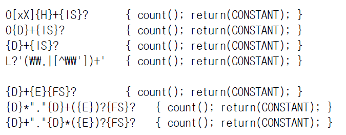 이 패턴 매칭들은 16진수, 8진수, 10진수, 소수와 같은 상수 값들을 판단한다.