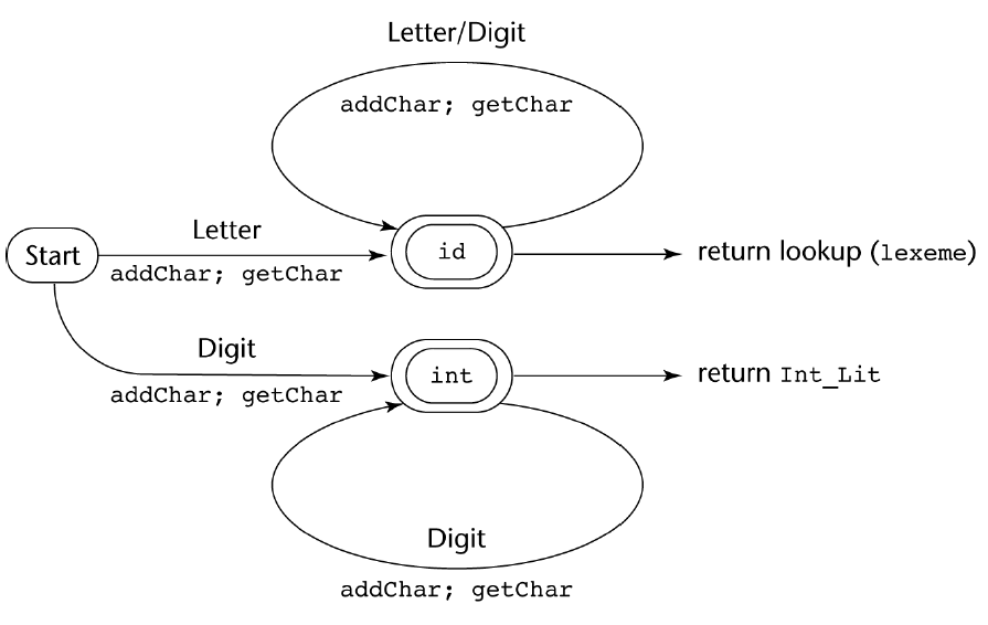 id 상태에서는 다시 Letter 가 들어올 수도, Digit 이 들어올 수도 있다.