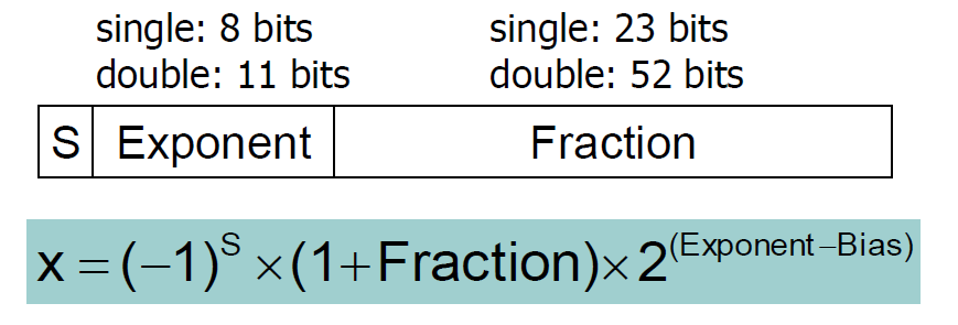 Sigle precision 에서는 bias 값이 127 이고, double 에서는 1023 이다.