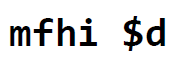 결과물을 가져와서 레지스터에 저장할 때는 mfhi (move from hi) mflo (move from low) 명령어를 사용하여 직접 레지스터에 값을 옮긴다.