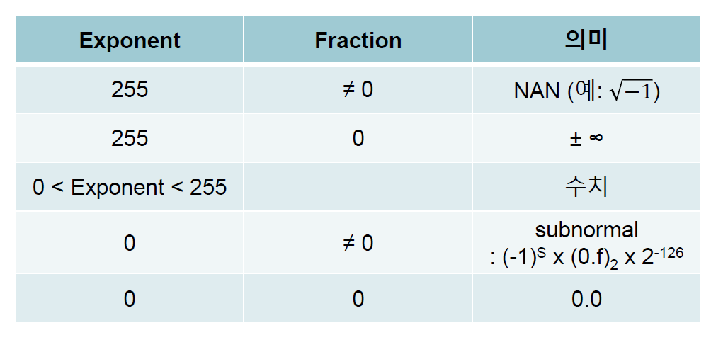 그렇다면 exponent 가 0과 255 일 때는 각각 어떤 의미를 가질까?