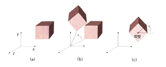 2. 물체를 원점 중심으로 기준축 주위 회전시킨다. (b)