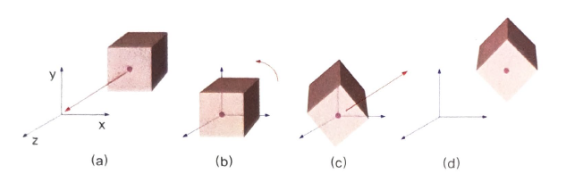 똑같은 행렬식이 나오지만, 물체 변환(object transformation)의 관점에서 보면 왼쪽에 변환행렬을 곱해나가는 것이고,