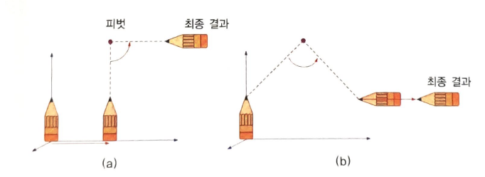 (a) 는 이동 후 회전한 결과이고, (b) 는 회전 후 이동한 결과이다.