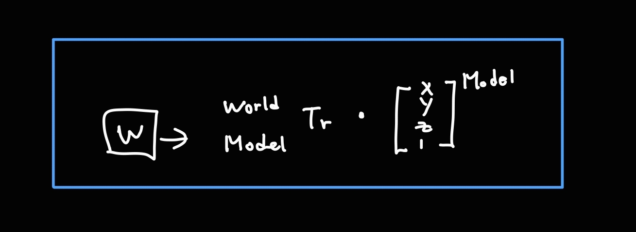 World 에서 Model 로의 변환 행렬에 모델 좌표 기준의 점을 곱해 World 기준의 점으로 변환한다.