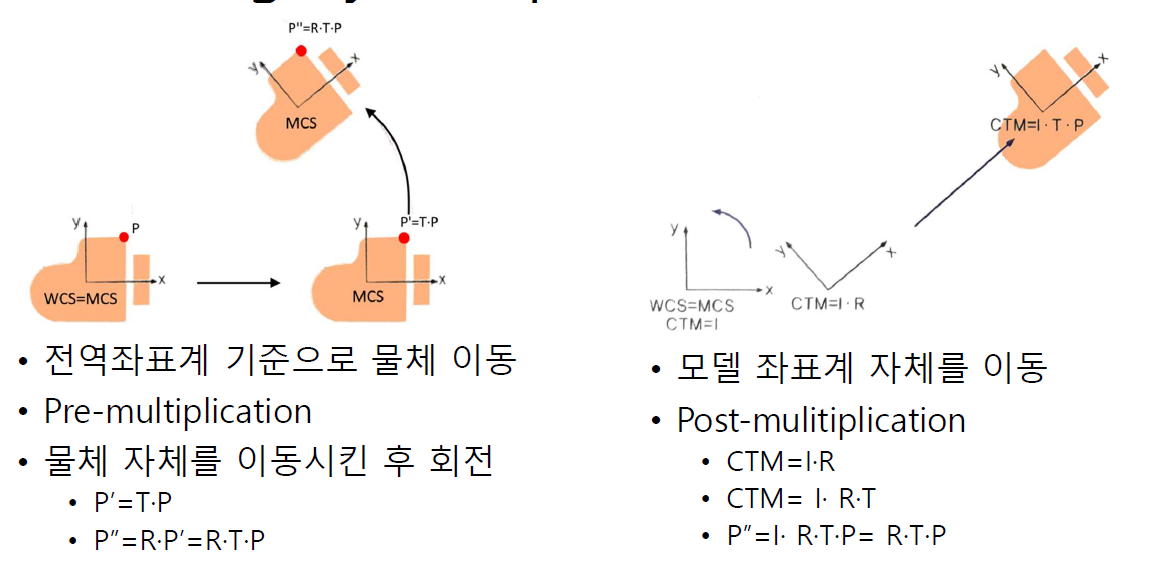 기존 물체 왼쪽에 변환 행렬을 곱해나간다.