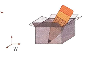 연필과 상자를 전역 좌표계 (World Coordinate System, WCS) 에 배치하기 전에 연필과 상자를 구성하는 정점은 각각 M1, M2 라는 자신들만의 좌표계 방식으로 표현한다.
