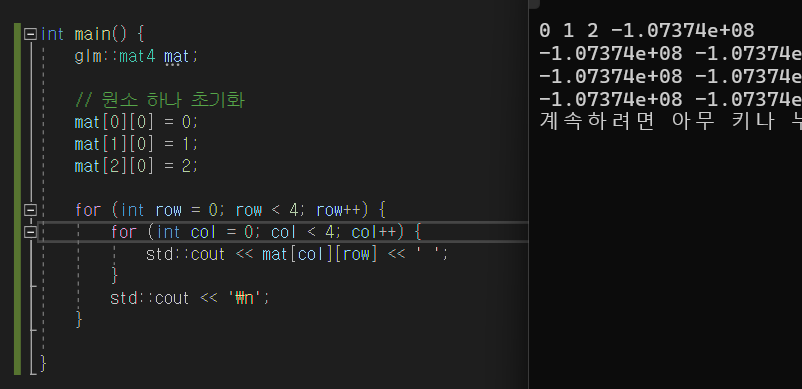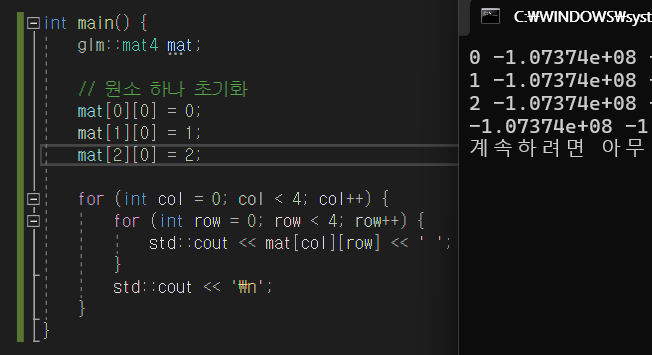 우선 glm에서 행렬 객체는 아래와 같이 선언한다.