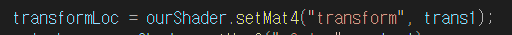 기존 translate 행렬에 회전까지 적용하면 위와 같이 출력된다.