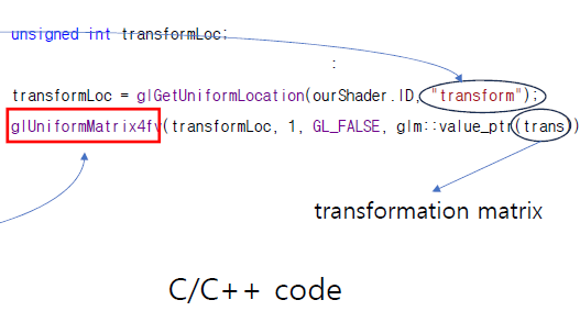 따라서 행렬을 최종 활용하려면 셰이더로 행렬을 넘겨야 한다.