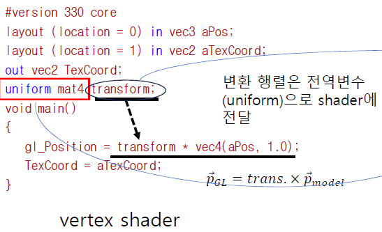 이렇게 만든 변환 행렬은 결국 정점에 곱해지기 위해 존재한다.