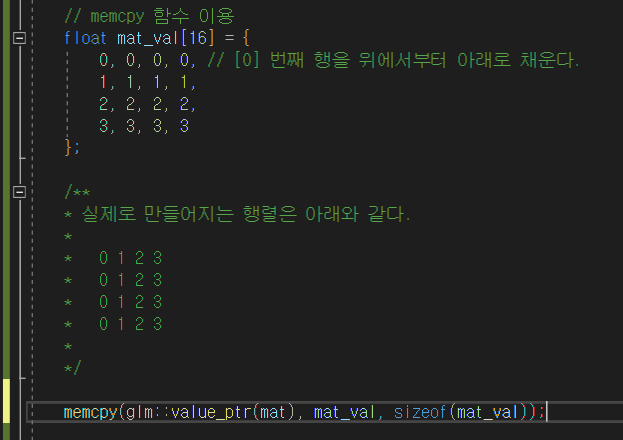 마지막으로 memcpy 함수를 이용해서 1차원 배열을 이용해 초기화 할 수도 있다.