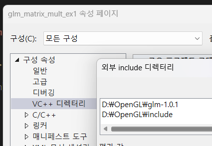 다운받은 glm 파일은 외부 include 디렉터리로 꼭 등록해주자.