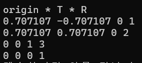 std::cout << "\norigin * T * R\n";