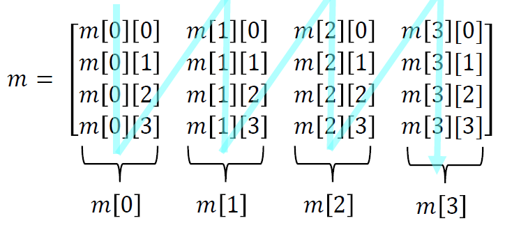 OpenGL 의 행렬은 column - major 방식으로 사용한다.