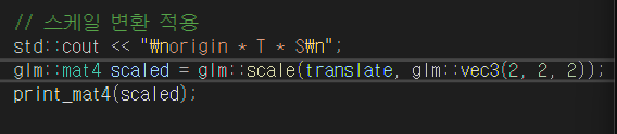 스케일 변환은 헷갈리지 않도록, 기존 translate 행렬에 대해서 적용했다.