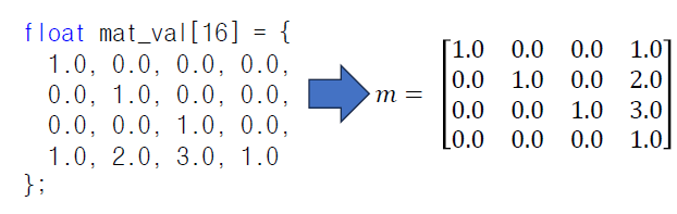 OpenGL 의 행렬은 column - major 방식으로 사용한다.