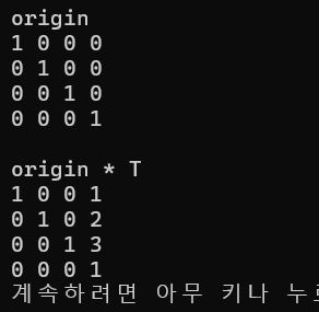 이렇게 단위행렬을 입력으로 주고, 이동 변환을 적용해보았다.