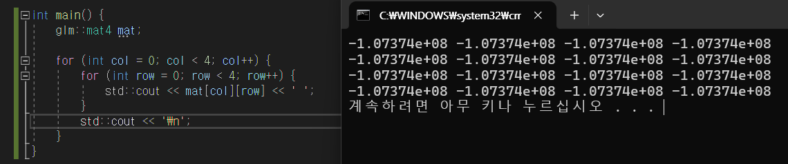 우선 glm에서 행렬 객체는 아래와 같이 선언한다.