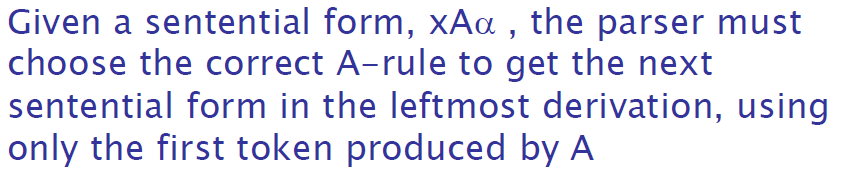 xAα 라는 sentential form 이 주어졌을 때, 파서는 적합한 A 규칙을 골라 다음 sentential form 을 얻어야 한다.