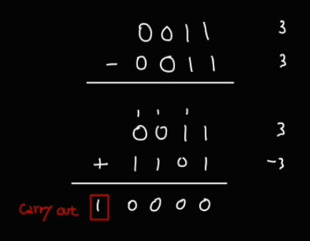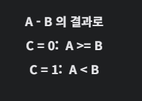 0보다 작은지 확인할 때는 덧셈기의 연산 결과 Carry out 비트가 존재하는지를 보면 된다.