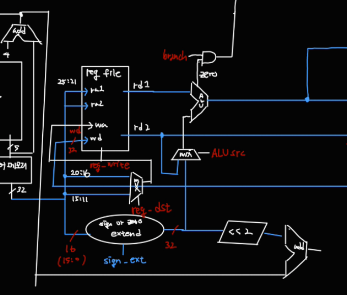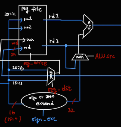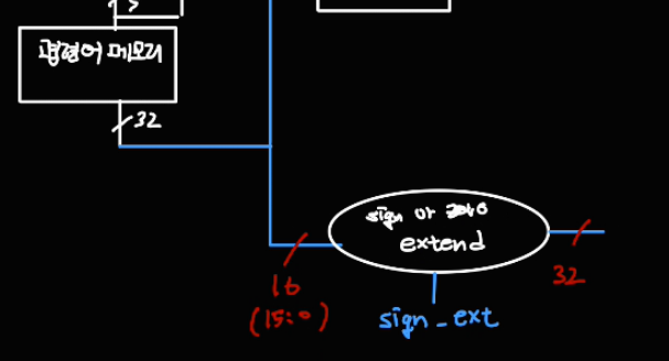 sign-extend 하기 위해 sign_ext 신호를 control unit 에게 받는다.