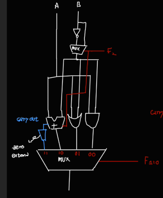 우선 결론만 말하면 A - B 를 한 결과 Carry Out 비트가 존재하면, A < B 이므로, 이 1bit 값을 32bit로 zero extension 해서 ALU 결과로 내보내면된다. (수정 : 1bit 값을 '반전' 해서 ALU 결과로 내보내야 한다.)