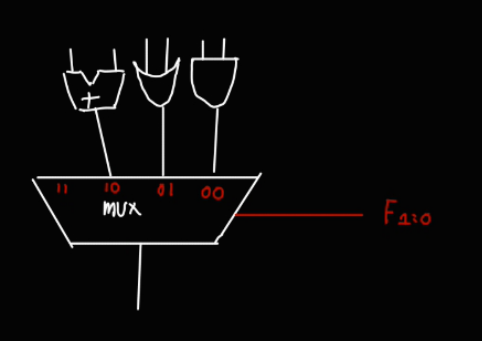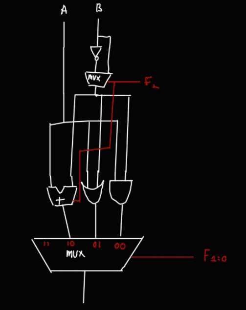 우선 F의 1, 0 번 비트를 통해서 &, |, + 연산이 결정된다는 걸 아래와 같이 작성했다.