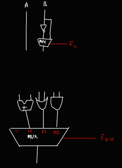 다음으로 이 표를 보면 F 의 2번째 비트가 0 이면 B를 그대로 사용하고, 1이면 B에 not 연산을 취했음을 알 수 있다.