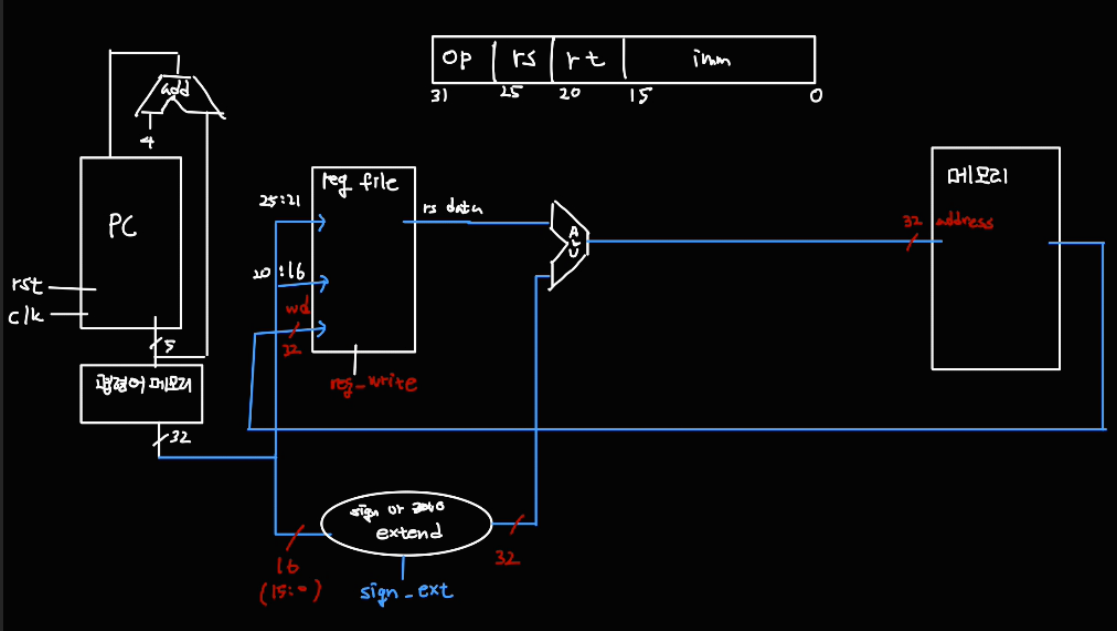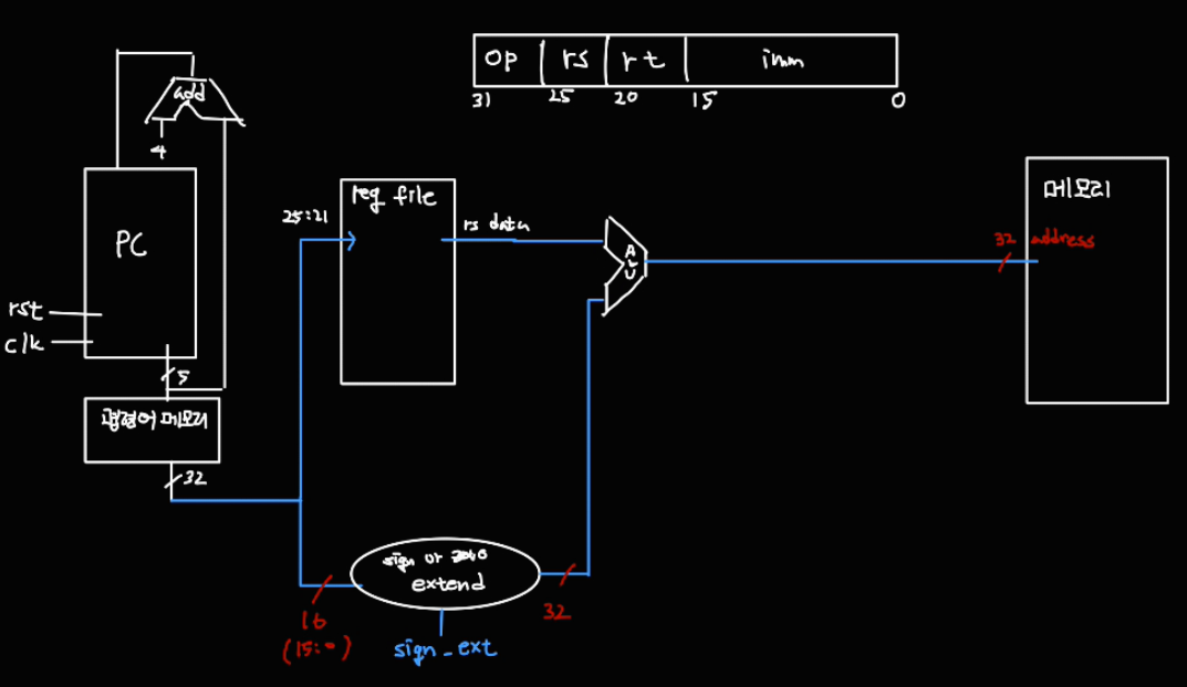 lw 명령어를 실행하는 과정을 하나씩 그려보자.