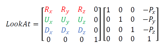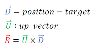 glm::lookAt(glm::vec3 position, glm::vec3, target, glm::vec3 up);