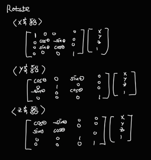 물체에 변환을 가할 때는 크기조절 -> 회전 -> 이동 순으로 변환 C = TRS
