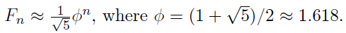 n번째 피보나치 수열의 값은 아래와 같이 근사되기 때문이다.