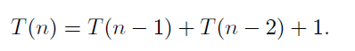 차이가 있다면 피보나치 수열은 Fn = Fn-1 + Fn-2 로 정의 되지만, T(n) = T(n-1) + T(n-2) + 1 로 정의 되기 때문에, 항상 피보나치 수열보다 큰 값을 갖는다.