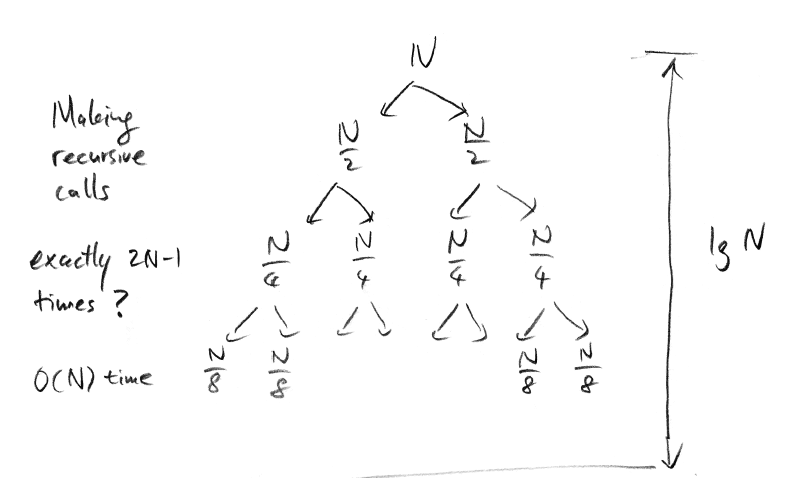 따라서 이 반복은 lgN번 반복한다. (지난 글에서 정한 notation 대로 밑이 2인 로그이다.)