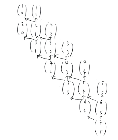 memo[i,j]=memo[i-1,j]+memo[i-1,j-1]