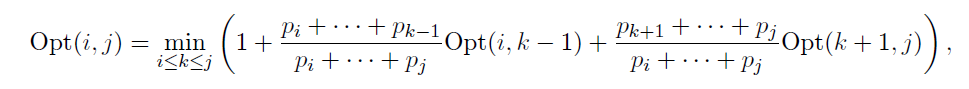 이 평균 키값 비교 횟수의 최적을 구할 땐 이 공식을 그대로 i부터 j 범위에 대해 모두 구해보고, 그 최소 (또는 경우에 따라 최대) 를 취하면 된다.